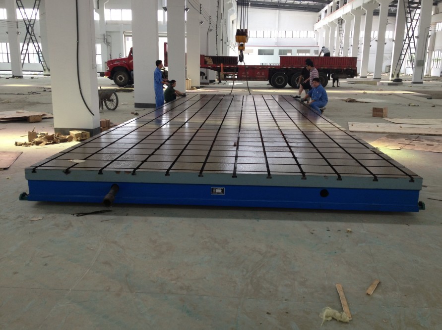 焊接平臺產(chǎn)品別名:鑄鐵焊接平板鑄鐵焊接平臺劃線平板 檢驗(yàn)平板 測量平板 裝配平板 大型鑄鐵平板 大型鑄鐵平臺 焊接平臺按GB/4986-85的標(biāo)準(zhǔn)制造,產(chǎn)品制成筋板式和箱體式,工作有長方形,材料HT200,工作面采用刮研工藝,工作面上可加V型、T型、U型槽和圓孔、長孔等。平板是用于工件檢測或劃線的平面基準(zhǔn)器具。平板安裝應(yīng)調(diào)至水平、負(fù)荷均分布于各支點(diǎn)上,環(huán)境溫度(20± 焊接平臺用途:用于機(jī)械、發(fā)動(dòng)機(jī)的動(dòng)力實(shí)驗(yàn),設(shè)備調(diào)試,具有較好的平面穩(wěn)定性和韌性,表面帶有T型槽,可以用來固定實(shí)驗(yàn)設(shè)備。 焊接平臺材質(zhì):高強(qiáng)度鑄鐵HT200-300工作面硬度為HB170-240,經(jīng)過兩次人工處理(人工退火600度-700度和自然時(shí)效2-3年)使用該產(chǎn)品的精度穩(wěn)定,耐磨性能好。 焊接平臺規(guī)格:100×100—3000×8000,(大于此規(guī)格的焊接平臺可以拼裝使用或按圖紙訂做。) 焊接平臺精度:按國家標(biāo)準(zhǔn)計(jì)量檢定規(guī)程執(zhí)行,分別為0、1、2、3四個(gè)等級。